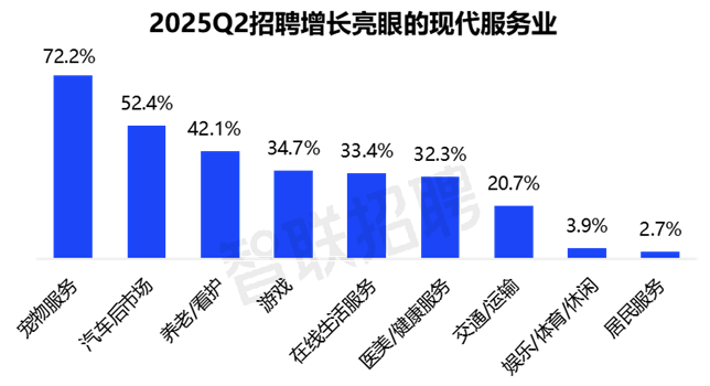 7月16日,智联招聘发布《2025年二季度人才市场热点快报》,报告显示,人才市场在产业结构升级与消费需求迭代的驱动下呈现鲜明活力。从现代服务业到“萌宠经济”,从先进制造业到“硬核科技”,各领域人才需求出现这些变化。